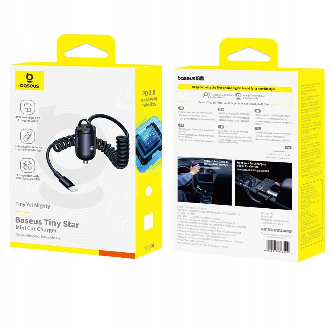 - Model: Tiny Star Mini Car Charger (C+L Cable Included) 30W Cosmic Black